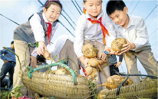 一開始是鬧出過不少笑話的。2009年夏天,一位科學老師帶著科學社團的學生去挖土豆。到了地里,學生們問了:“老師,怎么一個土豆也沒有?”有不少孩子以為土豆是長在樹上的。