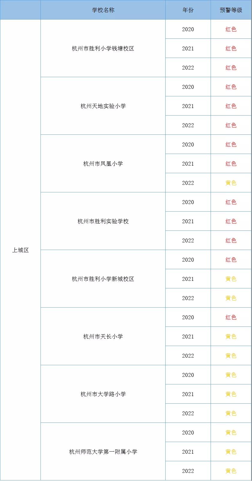 紅色預警,表示學區(qū)內(nèi)適齡戶籍兒童人數(shù)達到或超過學區(qū)小學常態(tài)招生計劃數(shù)100%。